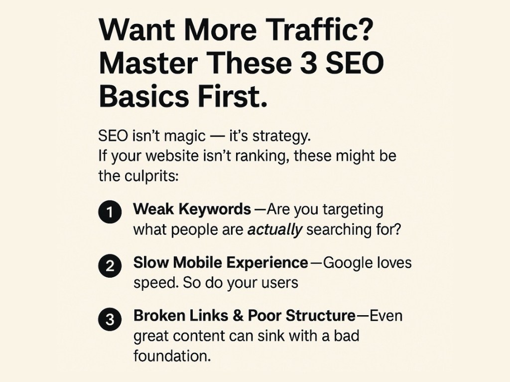 Everyone wants more website traffic. But what many forget is that SEO success doesn’t start with advanced tactics — it begins with strong fundamentals. 🚀