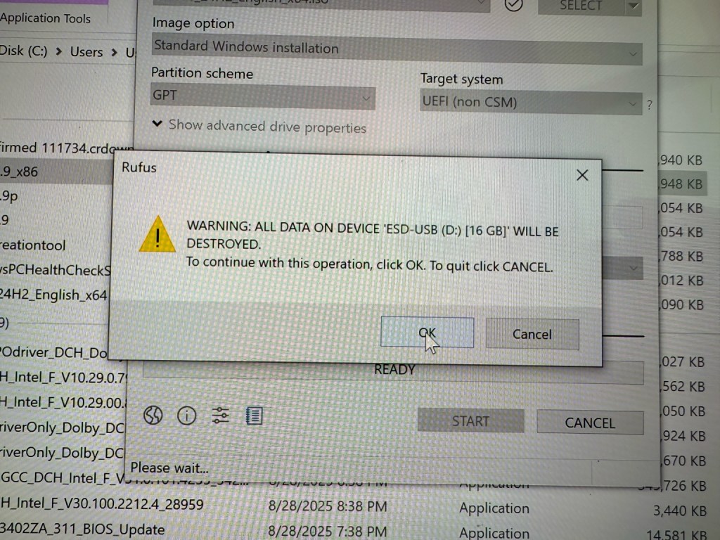 Alright then, time for the heavy artillery. I grabbed Microsoft’s Media Creation Tool and made myself a Windows 11 installation USB.