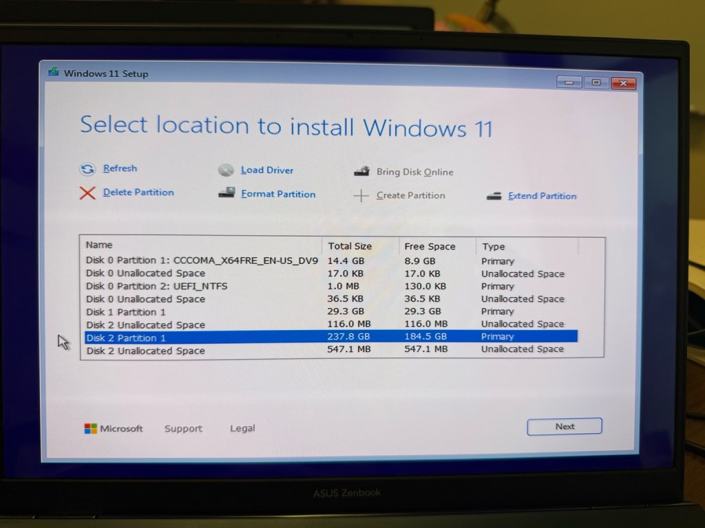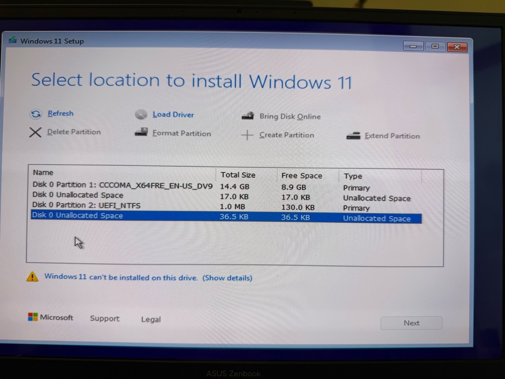 So I went to Asus support, downloaded the Intel RST / VMD driver, hit “Load Driver” during installation, and like magic – the SSD appeared.