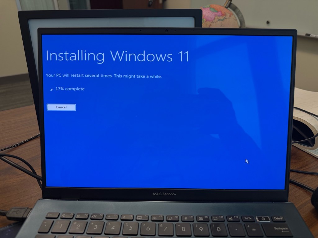 The installation started rolling: 17%, 50%, 100%… and after a few restarts, my Zenbook greeted me with a clean screen of…